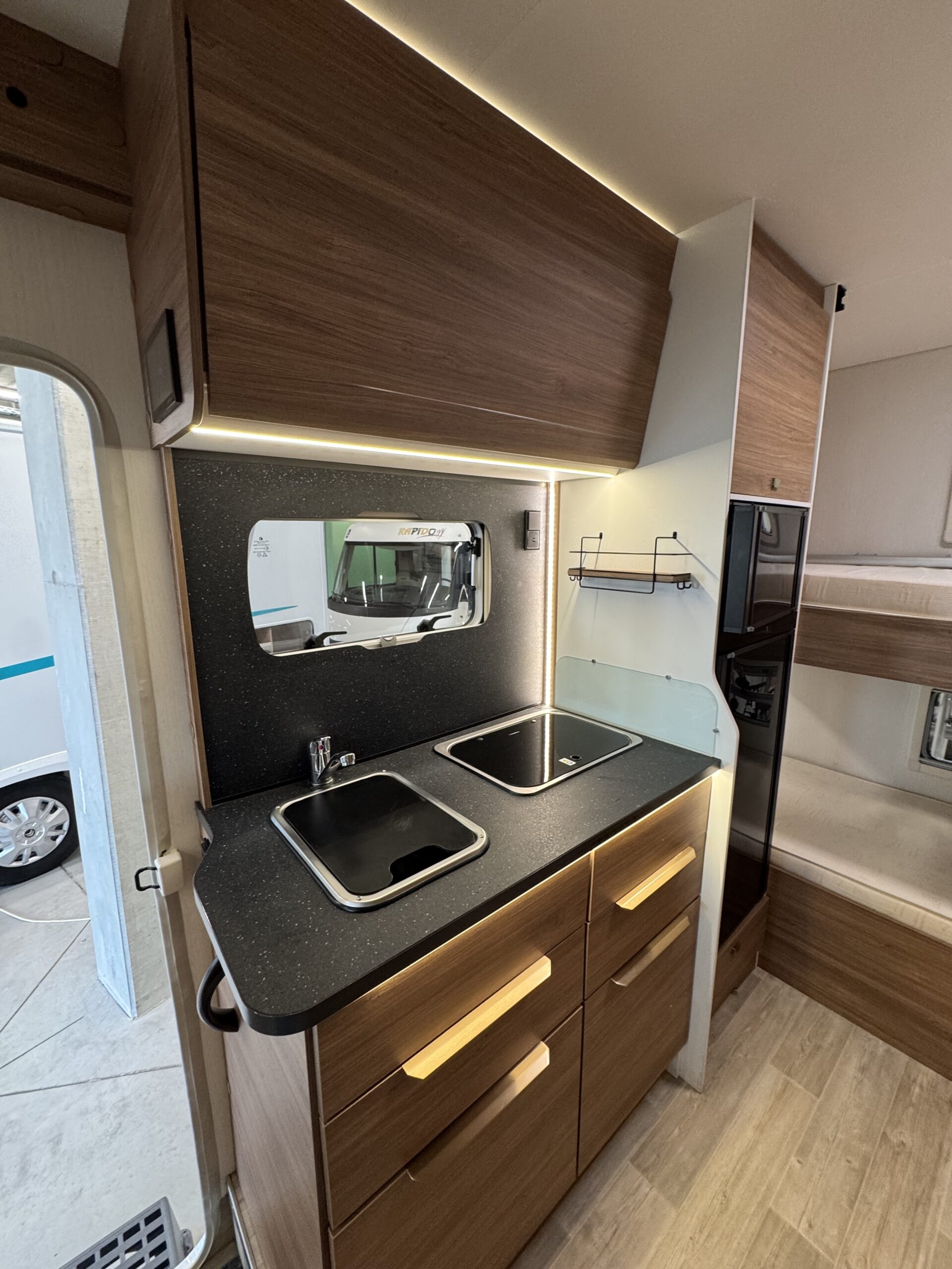 • Sur ce profilé proposé par Pilote, il existe donc six places de couchage. Le salon en dispose de quatre, les deux du lit pavillon (1M35 X1M95) et deux grâce à la transformation de la banquette (1M40 X 2M00).