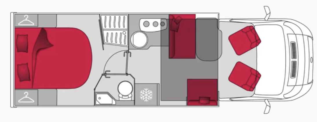 Un intérieur élégant et bien conçu avec une belle circulation, ce profilé de la gamme Pacific permet de voyager à 2 ou 4 avec aisance. Toutes les zones de vie sont agréables et indépenantes : un salon accueillant, un grand plan de travail en cuisine, une belle douche séparée et une belle chambre. Tout le confort est réuni dans le P746C.