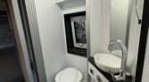 • une cabine douche-toilettes ingénieuse à paroi pivotante